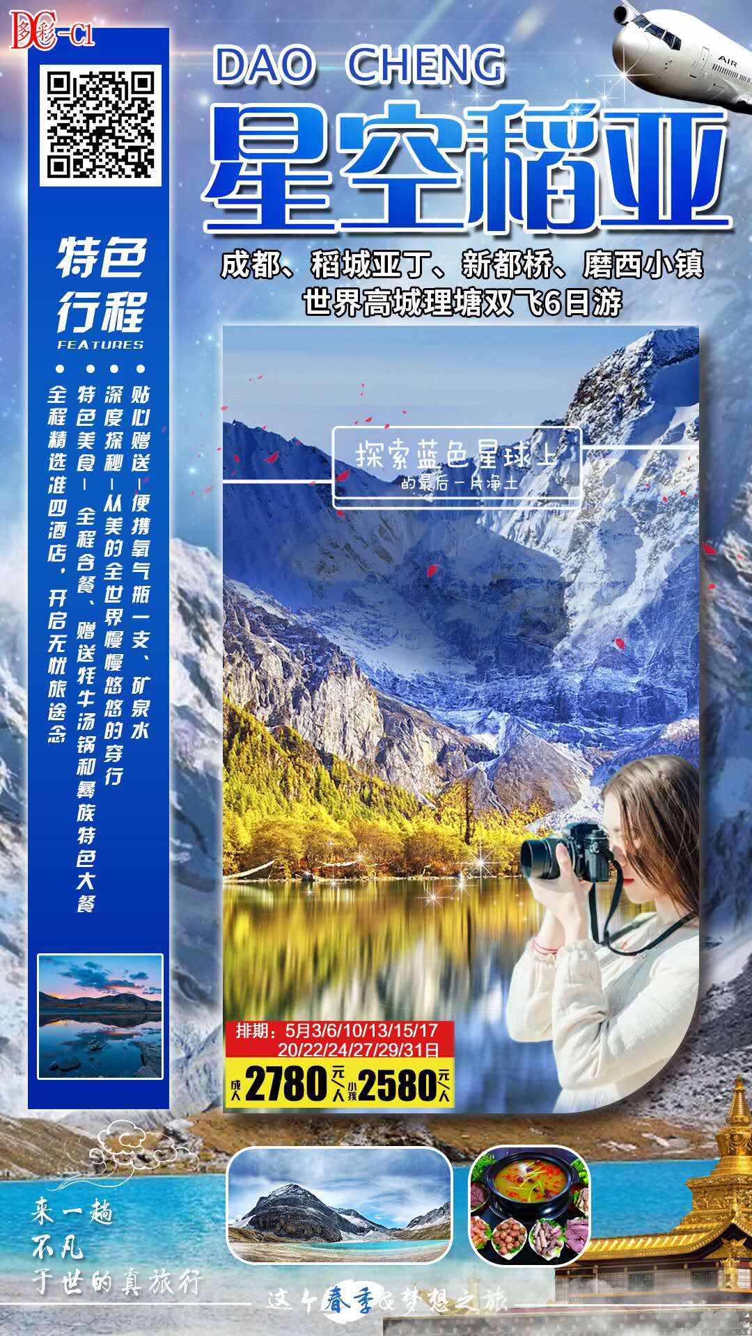 星空稻城雙飛6天深度游,最快可收5月3,6,10日